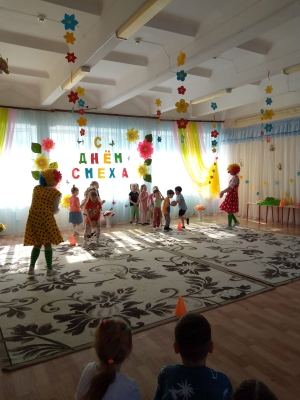 Весело и задорно сегодня в саду прошел "День смеха". На праздник к ребятам пришли весёлые клоуны. И вместе с ребятами устроили зажигательные танцы, активные игры и дружеские соревнования.