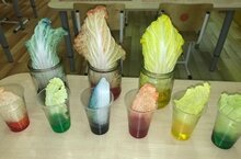 Листья салата, которые они применили в эксперименте лишены корней. Тем не менее оно не потеряло возможность поглощать воду. -