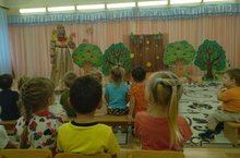 Сегодня для наших самых маленьких воспитанников прошёл кукольный театр, по мотивам сказки Владимира Сутеева "Мешок яблок". Малыши с интересом смотрели представление. По ходу повествования, ребята помогали зайчику путешествовать по лесу, выполняя задания от лесных жителей.