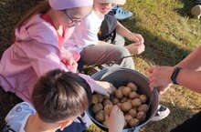 К походу дети подготовились очень ответственно. Приготовили рюкзаки с провизией, одели удобную одежду и обувь, взяли с собой хорошее настроение В походе ребята прошли полосу препятствий: мост через реку и миновали болото по кочкам, вспомнили о правилах поведения в лесу, о видах туризма. А также активно принимали участие в забавных играх и эстафетах, отвечали на вопросы, выполняли задания, пели песни и отгадывали загадки. Самым запоминающимся моментом стал момент, когда детей угостили печеной картошкой. -