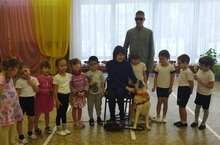 Обо всём этом нам рассказали сегодня наши гости из общества слепых, хозяева собаки – поводыря. Дети с большим удовольствием познакомились с собакой Асей, очень внимательно слушали о ней, а когда Ася показала все свои навыки, то были в восторге и даже аплодировали ей. На прощание все дети получили возможность сфотографироваться с Асей, погладить её.