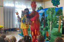 Сегодня артисты театра «Калейдоскоп» из города Набережные Челны выступили перед нашими воспитанниками. Детям была показана музыкальная поучительная сказка "Как Старичок-Лесовичок пожар тушил". Сказочные декорации, красивая музыка и интересная сказка очаровали наших детей. Ребята с интересом следили за героями, вместе с ними веселились, переживали, пели и помогали им. Интересный, и самое главное, в доступной форме поучительный сюжет сказки покорил детей и взрослых.