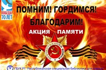К 70-летию Победы в Великой Отечественной войне 1941–1945 годов в рамках проекта «Ваш подвиг не забудем, Ветераны!» Республиканская специальная библиотека для слепых и слабовидящих проводит республиканскую патриотическую акцию «Помним! Гордимся! Благодарим!».