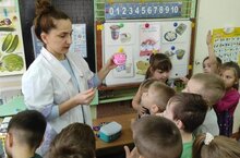 С удовольствием поиграли в игру "Собери аптечку", приняли участие в инсценировке сказки "Куян кызы", сделали гимнастику. Гульчачак Искандаровна познакомила детей с литературными произведениями, в которых говорится о значимости профессии врача и ветеринара. Ребята с удовольствием отгадывали загадки о ЗОЖ, продуктах, помогающих укрепить здоровье. Мальчики и девочки увлечённо смотрели мультфильм "Про бегемота, который боялся прививок", а затем задали множество вопросов по его сюжету.