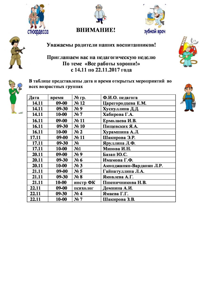 Педагогическая неделя "Все работы хороши!" 10.11.2017
