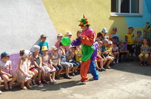 В рамках проведения еженедельных летних развлекательно-оздоровительных мероприятий, сегодня в нашем детском саду прошёл весёлый «Праздник воздушных шаров». По традиции участниками мероприятия стали все возрастные группы детского сада. В начале мероприятия детей встретила Ведущая, которая рассказала о шарах и об их предназначении. Неожиданным сюрпризом для детей стало появление грустного клоуна Клёпы, который пришёл с лопнувшим шариком и очень расстроился. Но Ведущая и ребята с радостью поделились с Клёпой своими шарами. В благодарность этому, Клёпа организовал с детьми весёлые игры и хороводы с шарами, в которых дети проявили быстроту и ловкость. На празднике дети рассказывали стихи и пели песни о воздушных шарах. Ведущая вместе с клоуном Клёпой загадывала детям интересные загадки про круглые предметы. Наконец, праздник завершился весёлой "Воздушной дискотекой", где каждый участник мероприятия веселился и танцевал с разноцветными воздушными шарами.