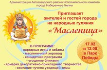17 февраля в 12.00 в парке культуры и отдыха «Победа» состоится праздничная программа с играми и конкурсами для детей и взрослого населения
