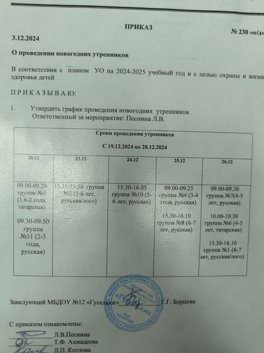 график новогодних утренников 03.12.2024