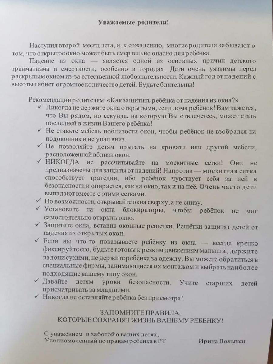 Рекомендации родителям: "Как защитить ребенка от падения из окна?" 07.07.2021
