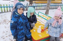 Первый снег - настоящая сказка для детей. Он несёт с собой какую-то особую радость, уют и добрые впечатления. Пусть его будет даже совсем мало, но всегда хочется остановиться и посмотреть на заснеженные деревья, кустики, крыши домов. Ведь он так удивительно красиво искрится, покрывая всё вокруг, падающие снежинки завораживают своими причудливыми формами, а иней на деревьях и кустиках заставляет любоваться собой вновь и вновь. Румяные щёчки, блестящие глаза, отличное настроение – таков результат наших прогулок с ребятами. А совместные наблюдения с воспитателями за природными явлениями оставляют у детей яркие впечатления надолго. Ребята на прогулке со Светланой Рудольфовной очень радуются снегу.