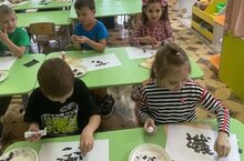 В 4 группе ребята рисовали гуашью с Эльвирой Михайловной на тему "Сова на дереве". -