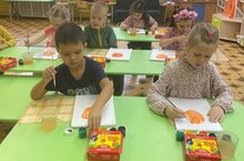 Детям нравится выполнять творческие работы в виде обрывной аппликации. Её техника заключается в том, чтобы передать изображение с помощью обрывков бумаги. Дети с удовольствием заполняют контуры рисунка небольшими кусочками бумаги. И вот такие чудесные ёжики получились у ребят 4 группы, выполнивших аппликации с воспитателем Эльвирой Михайловной.