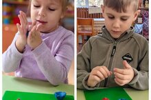 Очередное занятие кружка "Акварелька" с воспитателями Лидией Николаевной и Светланой Рудольфовной было посвящено теме "Осенний лес" - ребята рисовали пальчиками, используя настоящие осенние листочки с деревьев. -