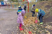 Наши ребята - большие молодцы - помогают взрослым в уборке территории детского сада. -