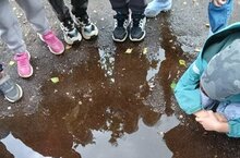Наблюдение является очень важным методом экологического воспитания детей: оно позволяет пробудить чувства к природе, развить наблюдательность, сенсорные ощущения и, благодаря им, богатое восприятие. Наблюдение расширяет кругозор детей, обогащает их мышление множеством конкретных сведений о таинствах жизни в природе. Каждое знакомство с природой – урок развития детского ума, творчества, чувства. Своей необычностью, новизной, разнообразием природа эмоционально воздействует на ребенка, вызывает у него удивление, радость, восторг, желание больше узнать, побуждает к передаче чувств и мыслей в речи. "Картинки в лужах" - под таким интересным названием прошла прогулка у воспитанников Татьяны Владимировны.