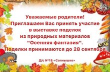 Приглашаем вас принять участие в выставке поделок из бросового и природного материала "Осенняя фантазия".