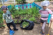 Дети в нашем саду активно проявляют интерес к любым видам труда. Они готовы браться за любое поручение с большим желанием и энтузиазмом. При этом ребята слаженно и старательно действуют, когда поставленная задача требует совместных усилий. В детском саду дети регулярно выполняют различные виды работ: наведение порядка в группе и на участие, мытьё игрушек, разные виды дежурства, уход за растениями. Важное значение в этом процессе приобретает принцип индивидуального подхода: воспитатель внимательно и чутко относится к ребёнку, который хочет проявить трудовые навыки. В процессе ознакомления с трудом взрослых у детей формируется положительное отношение к их труду, бережное отношение к его результатам, стремление оказывать взрослым посильную помощь. Дети в ходе выполнения поручений успешно справляются с несложными обязанностями и не боятся возникающих незначительных трудностей в процессе, а главное - готовы нести ответственность за порученное дело. Во время летних прогулок наши ребята с удовольствием помогают воспитателям на участке.