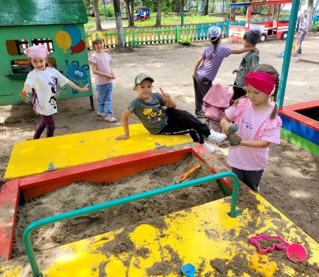 Всем нам хорошо знакомый песок кажется обыденным явлением. Но на самом деле это очень интересный материал. И дети, и взрослые могут часами возиться в песке, строить башни, города или просто наблюдать за ним, пересыпая с ладони на ладонь. Песок обладает разными свойствами: он может быть сухим и мокрым, лёгким и тяжёлым, липким и рассыпчатым. Играя с ним, ребёнок открывает для себя что-то удивительное, новое, познавательное. Игры с песком имеют большое значение для поддержания психического здоровья и развития познавательных процессов, влияют на формирование представлений об окружающем мире. Ежегодно, на игровых площадках нашего сада проводится полная смена песка. Вновь завозимый песок соответствует гигиеническим нормативам по паразитологическим, микробиологическим, санитарно-химическим, радиологическим показателям. Поэтому игры в песочнице - это не только увлекательное занятие, но и безопасное. Наши дети, выходя на прогулку, с удовольствием отправляются к песочнице творить и созидать при помощи песка. В увлекательной игровой форме ребята знакомятся со свойствами песка, при этом получая эстетическое удовольствие и массу положительных впечатлений.