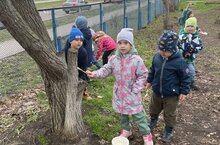 Ребята 5 группы - ответственные помощники в благоустройстве детского сада.
