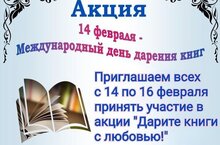 С 14 по 16 февраля в нашем детском саду пройдёт акция «Дарите книги с любовью!», приуроченная к Международному дню книгодарения, который отмечается 14 февраля. Международный день дарения книг — праздник, который призван прививать любовь к чтению книг. Этот день объединяет тех, кто дарит свои книги и тех, кто принимает их в дар.