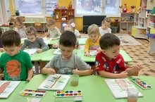 Группа 4. Рисование акварелью "Наша нарядная ёлка".