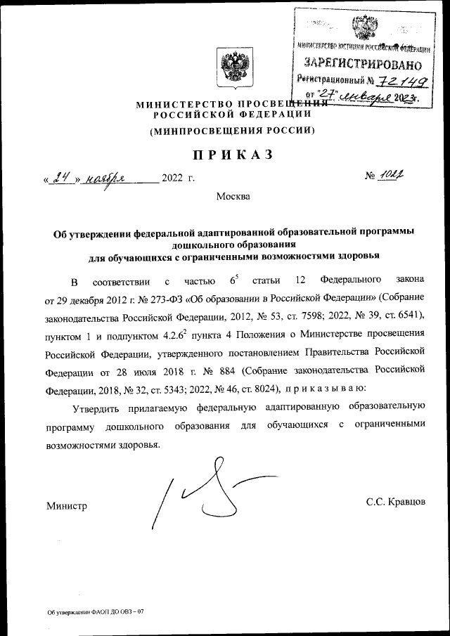Приказ №1022 от 24_11_2022 об утверждении ФАОП ДО