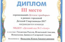 Наши воспитанники , Гиздатов Радэль,Исмагилов Данис, Сагирова Азалия, Игнатьева Амелия,под руководством нашего инструктора по физической культуре Фазыловой И.Х. получили почетное третье место в городском соревновании "Детское троеборье". Поздравляем их и желаем дальнейших побед!
