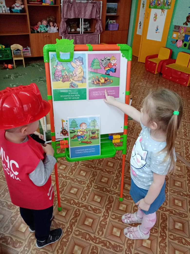 С 10 по 13 марта в ДОУ проводились ежегодные краткосрочные занятия, направленные на информирование детей о правилах пожарной безопасности во время нахождения на природе. Основная цель проведенных мероприятий: закрепить у детей знаний о пожарной безопасности; познакомить дошкольников с причинами возникновения пожаров, со степенью их опасности; научить предвидеть и прогнозировать опасные ситуации, связанные с возникновением пожаров в лесу. На протяжении недели педагоги ДОУ проводили беседы на тему «Безопасный костёр», «Пожар в лесу», «Берегите  лес!»; организовали просмотр презентаций и мультипликационных фильмов «Кошкин дом», «Болик и Лелик»; экскурсии в пожарную часть; настольные дидактические и сюжетно-ролевые игры. Для родителей разработаны буклеты, памятки по данной теме.