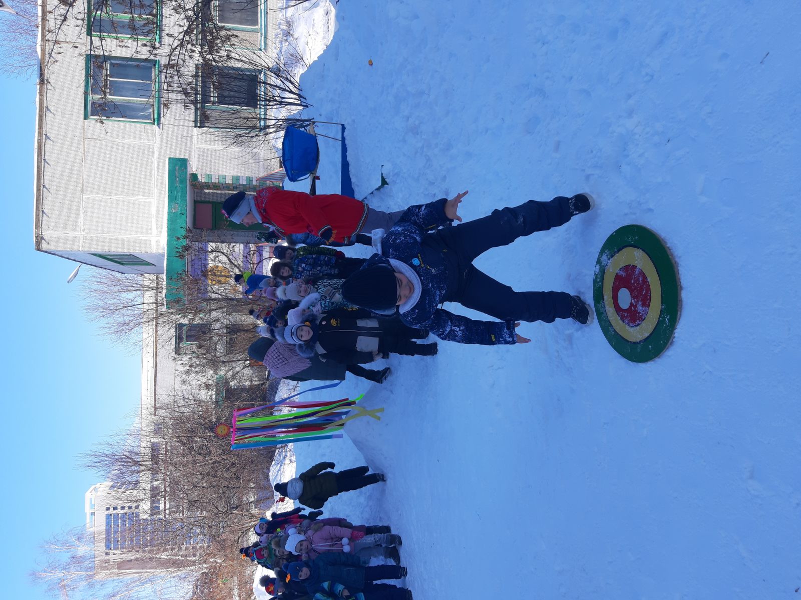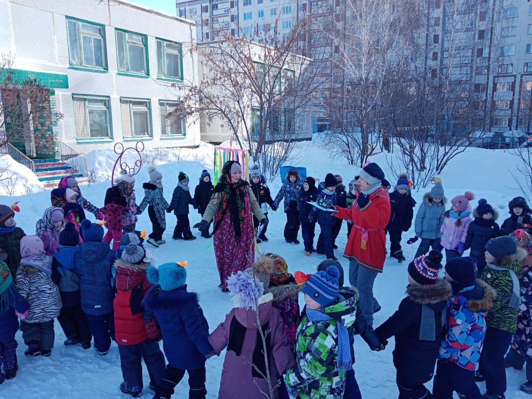 Традиционно на празднике мы провожали зиму и встречали Весну. Зима не хотела уступать место Весне. В этом споре победила Весна, и Зиме пришлось уйти. Все с радостью проводили ее и попрощались с ней до следующего года.