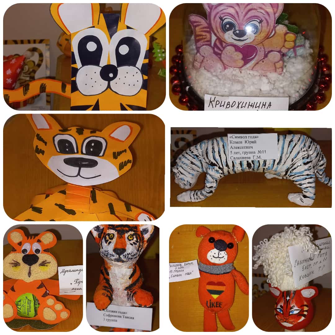 Для детей и родителей - любителей мастерить, удивлять своим творчеством, эта выставка стала особенно интересной. Необыкновенные творения - тигры, привлекают своей яркостью и красочностью и украшают новогодний интерьер детского сада.