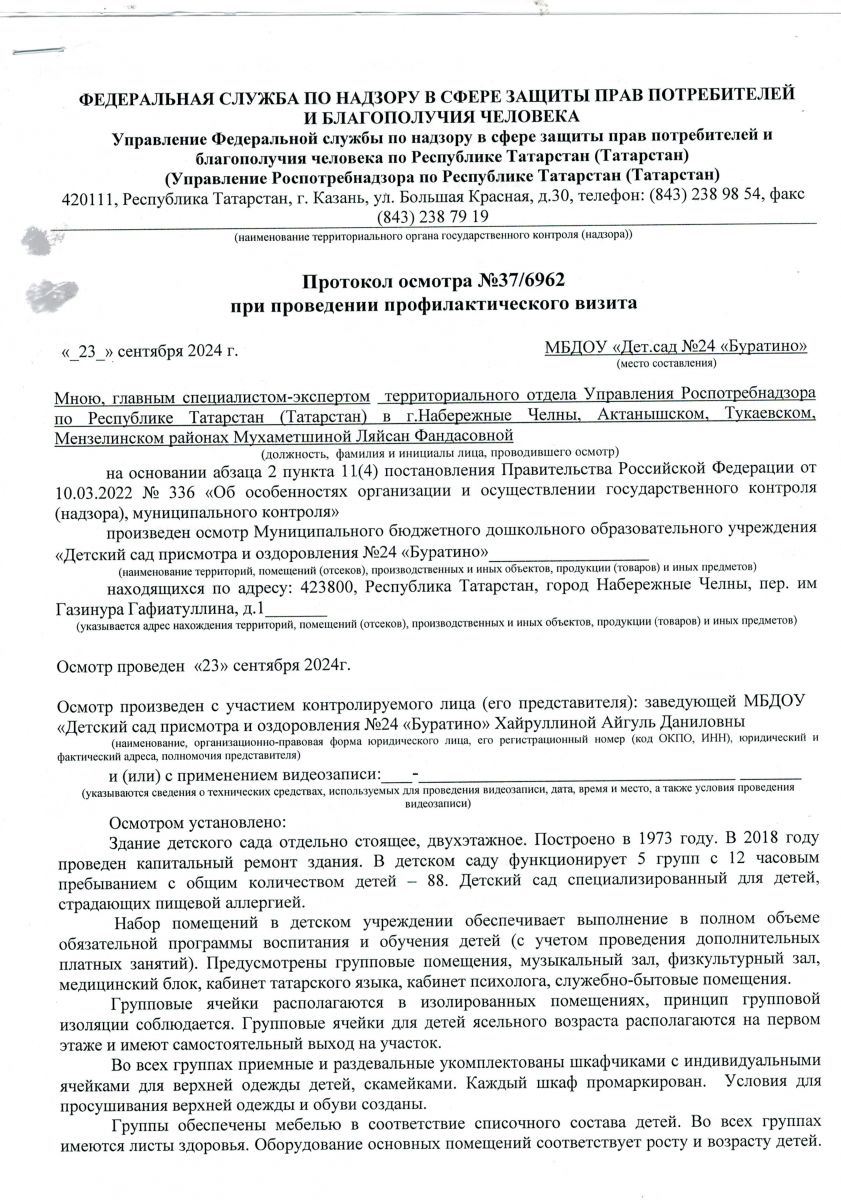 Муниципальное бюджетное дошкольное образовательное учреждение города Набережные Челны «Детский сад присмотра и оздоровления №24 «Буратино»