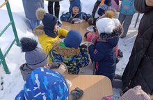 C детьми старших и подготовительных к школе групп на улице прошло мероприятие "Зарница", посвященное дню Защитника Отечества. Воспитанники играли в зимние игры, соревновались между собой и ели солдатскую гречневую кашу