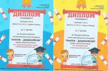 Дети старшего дошкольного возраста приняли участие и заняли места во Всероссийском интеллектуальном конкурсе "Знаток - дошколёнок" среди дошкольников по математике, по развитию речи, по окружающему миру!