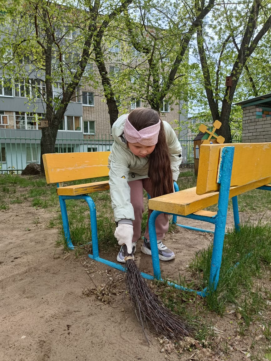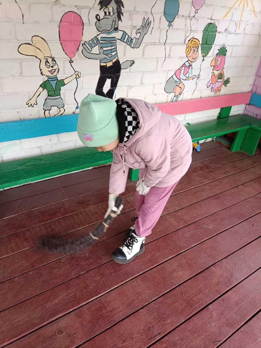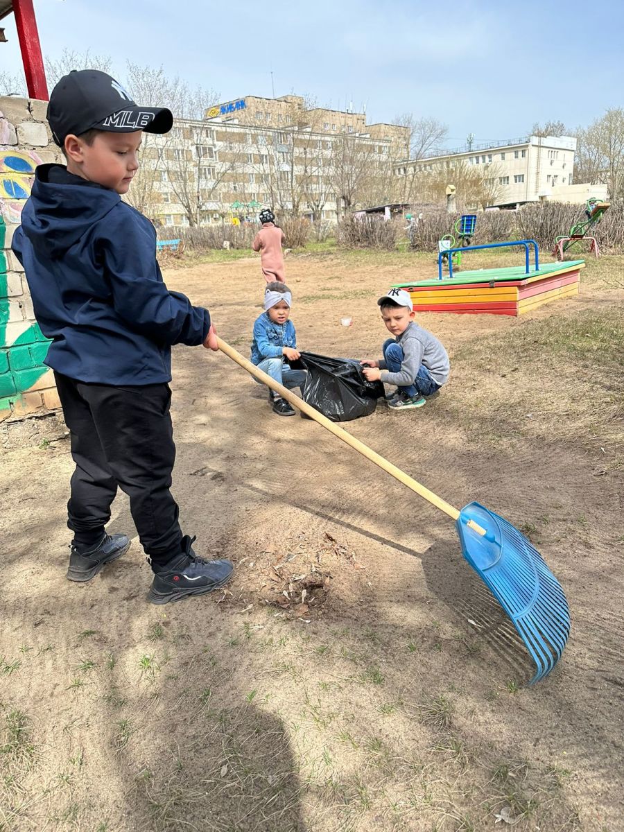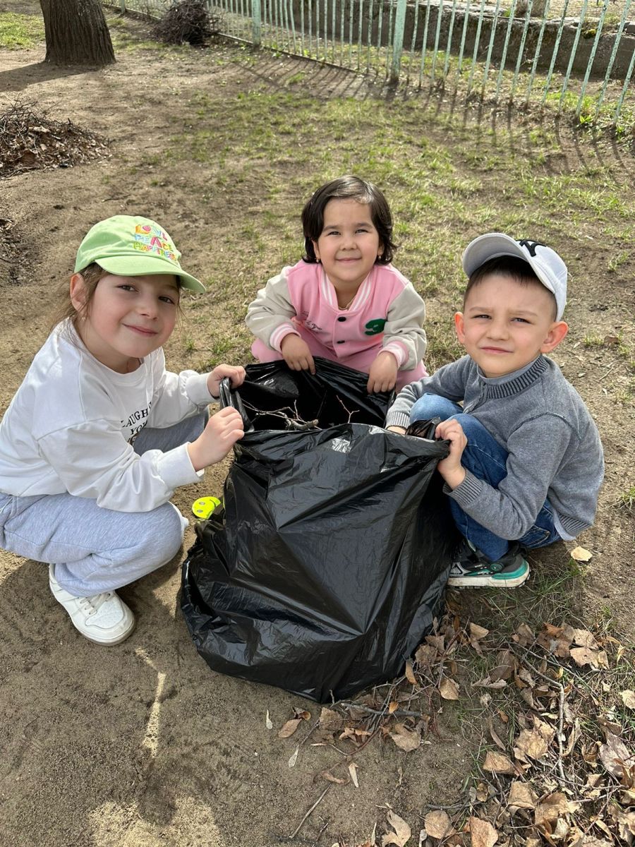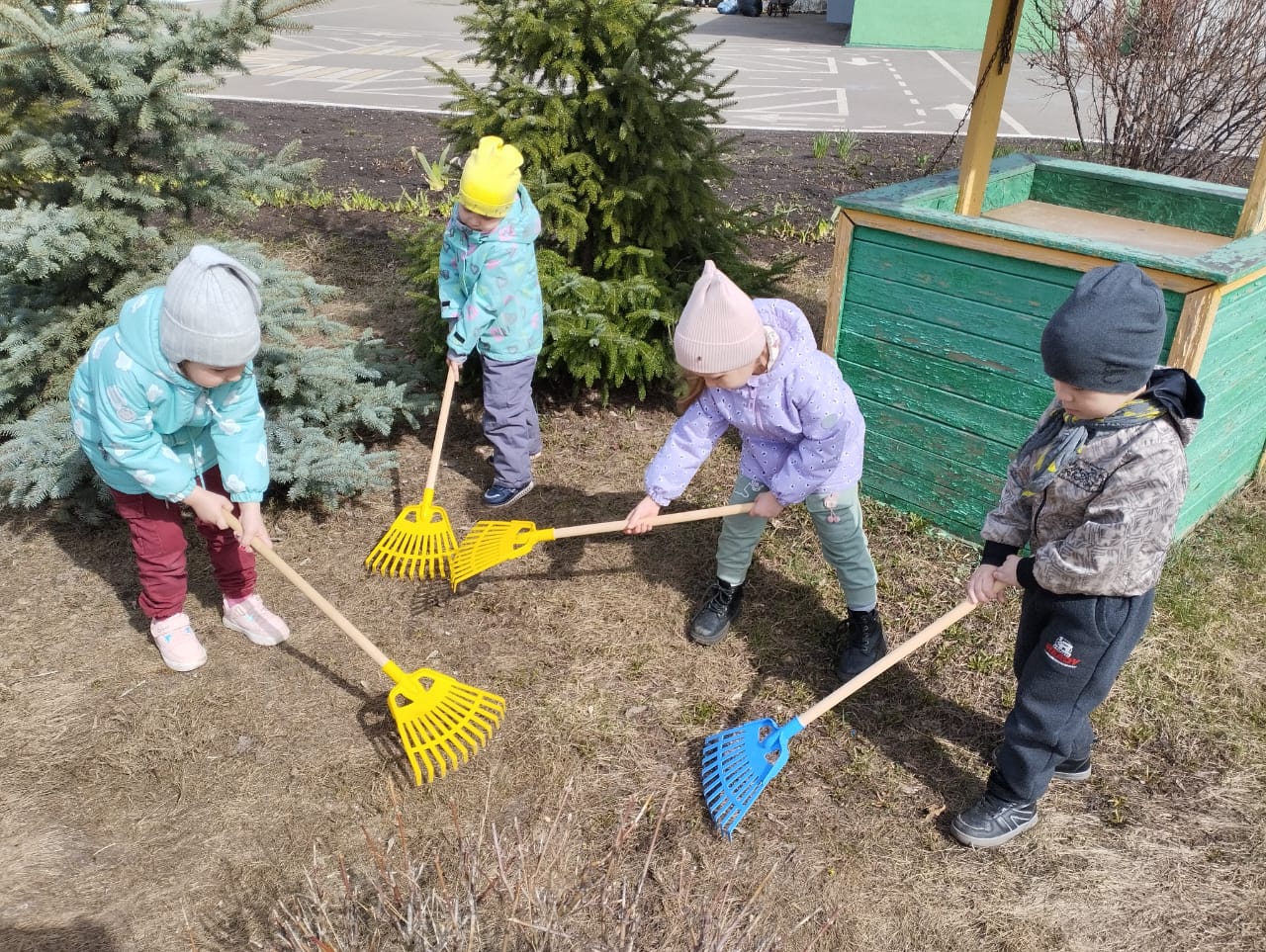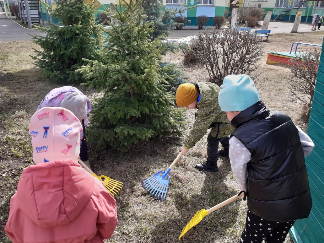 Воспитанники нашего детского сада после бодрящей утренней зарядки тоже приводят в порядок территорию своих участков. Каждый день, заботясь о себе, не забывай о мире вокруг – о его экологии и безопасности.