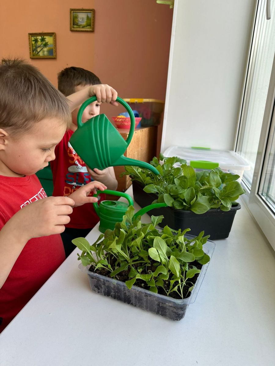 В нашем детском саду тематическая неделя «Твои действия» республиканского конкурса «ЭКОВЕСНА» продолжается "трудовыми десантами" по уборке участков. С наступлением весны требует внимания и огород. Скоро на грядках будут расти овощи и зелень! А пока воспитанники продолжают заботливо ухаживать за рассадой.