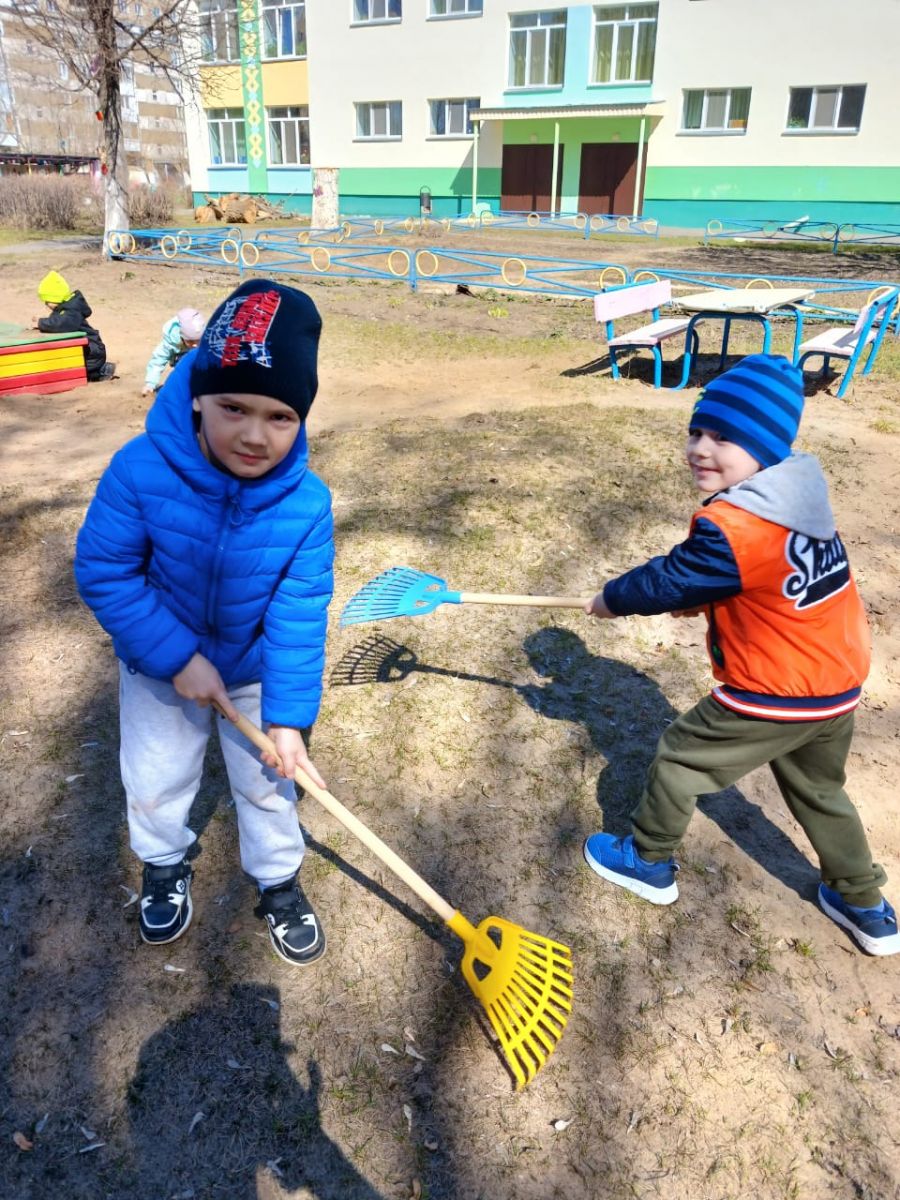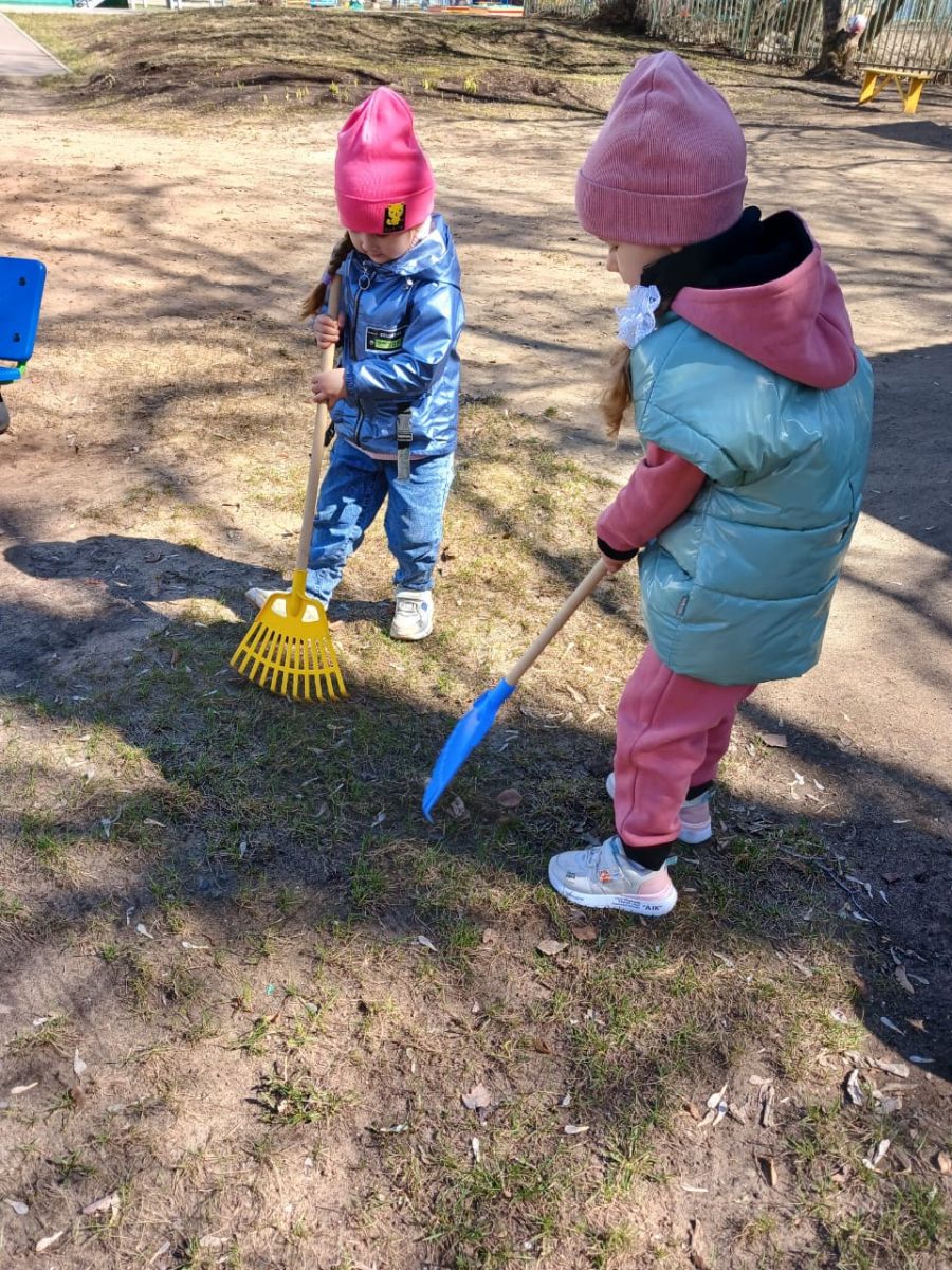На участках средних групп №2 и №11 нашего детского сада светит солнце, снег давно растаял, и дети вместе с воспитателями решили убрать территорию от мусора и сухих листьев, навести чистоту и порядок. На помощь пришли грабли и метелочки. Каждый участник «экологического десанта» внес частичку своего труда.