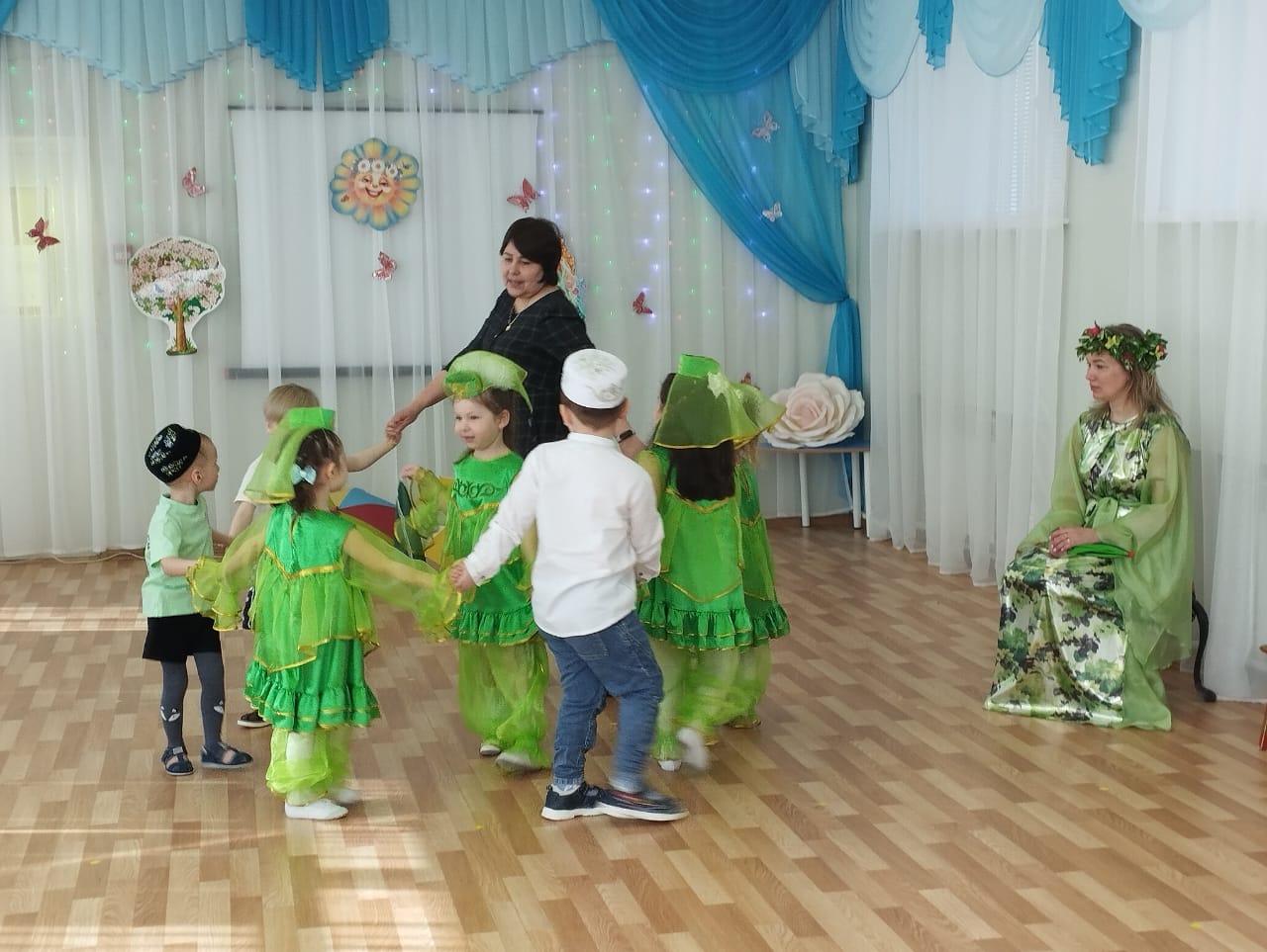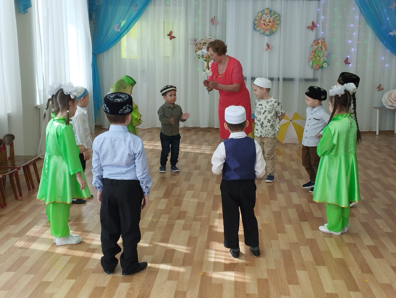 Навруз - праздник весны, обновления природы, возвращения птиц в родные края. В нашем детском саду празднование фольклорных народных праздников стало доброй традицией. Продолжая работу в этом направлении, в средних группах нашего сада прошел праздник «Навруз», который организовали музыкальный руководитель Дружинина Людмила Анатольевна, воспитатели Шакирова Каусария Хамитовна и Гильмулина Гульнур Исхаковна. Воспитанники рассказывали стихи, пели песни о весне и птицах, танцевали народные танцы, играли в татарские игры. Дети с большим желанием участвовали во всех конкурсах и играх. Такие праздники помогают сохранить дружбу между народами, воспитывают любовь и интерес к национальным праздникам.