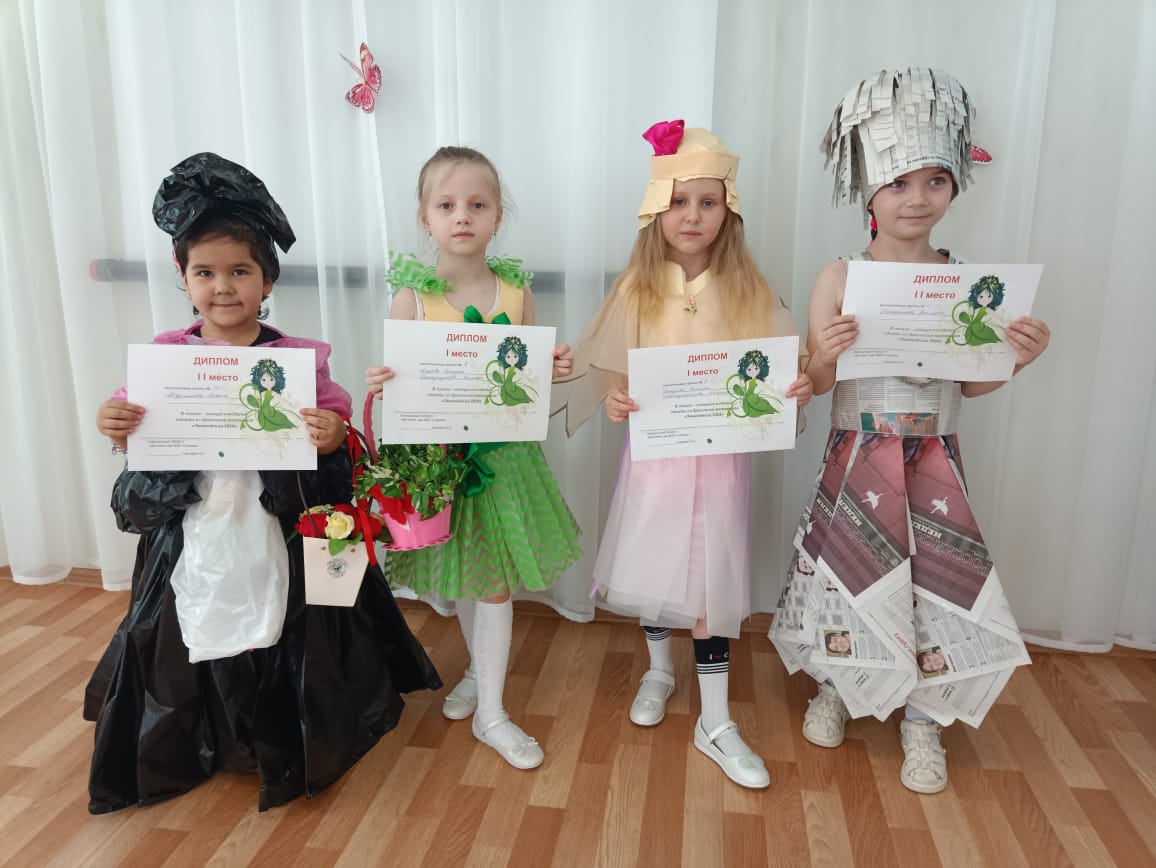 В нашем детском саду тематическая неделя «Мы за раздельный сбор» республиканского конкурса «ЭКОВЕСНА» завершилась показом - конкурсом одежды из бросового материала «Экомодница - 2024». Зрителям были представлены модельные платья и костюмы из бытовых отходов, таких как газеты, пластиковые пакеты, упаковочный материал. При изготовлении костюмов из бросового материала, семьи воспитанников по-новому взглянули на бытовые отходы, проявив чудеса фантазии и смекалки, мастерство и находчивость. Под зажигательную музыку и аплодисменты на подиуме состоялось дефиле участниц конкурса. Все они были награждены дипломами.