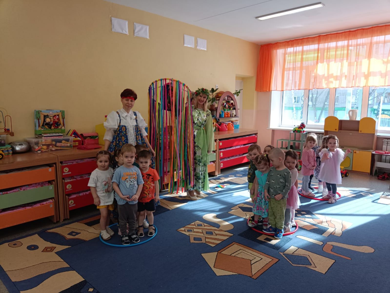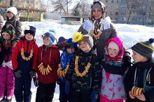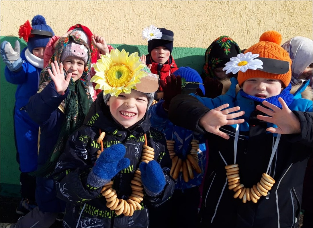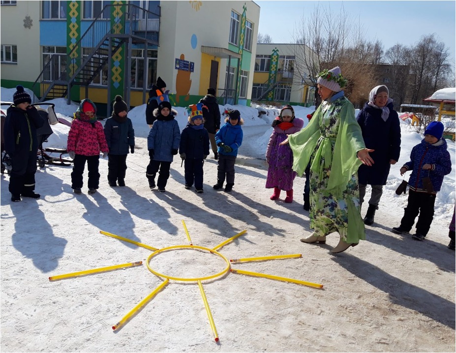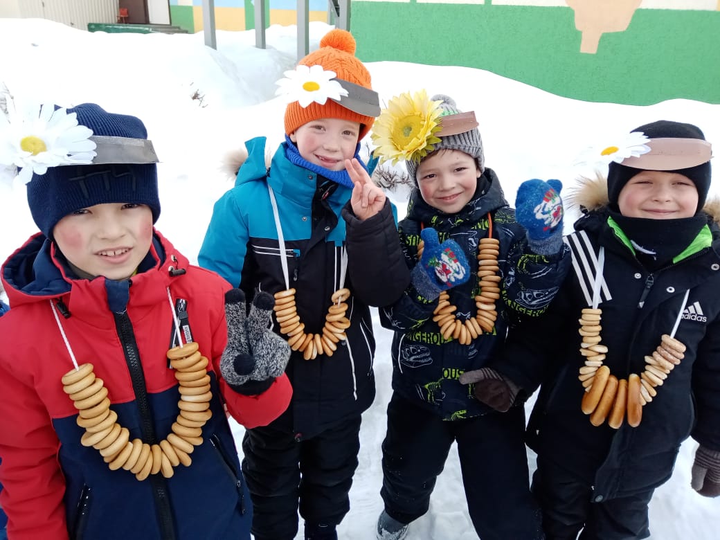 Масленица – это весёлые проводы зимы с радостными гуляниями и песнопениями. Воспитанники нашего детского сада в солнечный весенний день праздновали масленицу. В гости к детям пришли сказочные герои Весна – красна, Баба- Яга и румяный Блинчик. Проводы зимы прошли на славу. Дети с баранками, в ярких платках, вместе с веселыми скоморохами с удовольствием играли, отгадывали загадки о блинах, солнышке, весне, водили хороводы. Детские глаза выражали восторг, а на лице сияла улыбка от ярких эмоций праздника. Главным угощением стали блины, которые своей круглой форой напоминают солнце – символ Весны.
