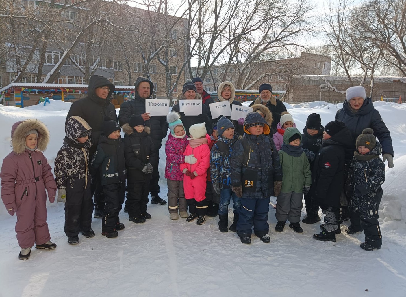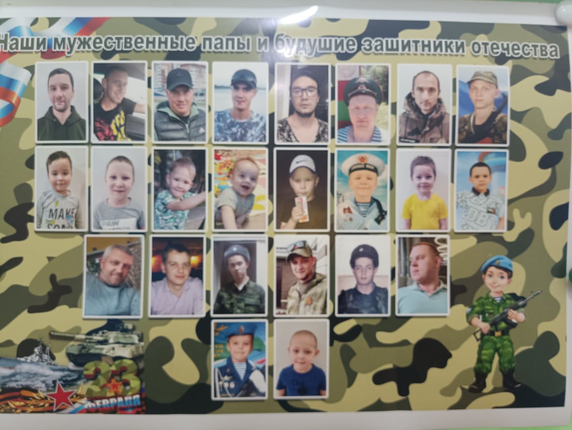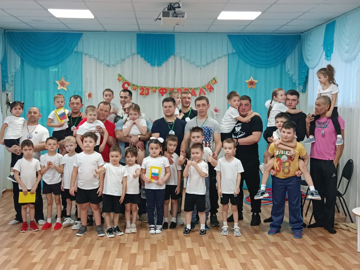 В преддверии Дня Защитника Отечества педагоги и воспитанники нашего детского сада приготовили папам подарки, оформили фотовыставку «Наши защитники – мы Вами гордимся!». Дети с гордостью рассказывали о службе пап, дедушек и бабушек. О том, где те служили, какие военные обязанности выполняли по долгу службы. Также в честь праздника состоялись спортивные мероприятия. В старшей группе дети вместе с папами соревновались «Я – защитник своего Отечества». В подготовительных группах – спортивная игра «Зарница». В ходе мероприятий участники показали свою ловкость, смекалку, взаимовыручку!