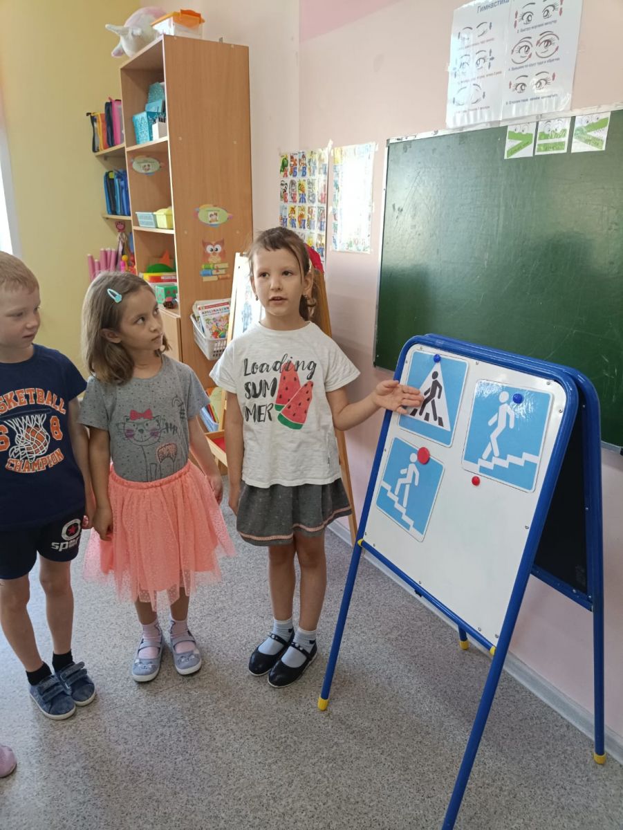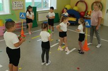 В рамках тематической недели, по обучению детей правилам безопасного поведения на дороге, воспитанники подготовительной к школе группы №1 показали свои знания по правилам безопасного поведения на дороге: переход по пешеходному переходу, рассказ про дорожные знаки для пешеходов. Также с интересом проиграли сюжетно-ролевую «Инспектор ГИБДД».