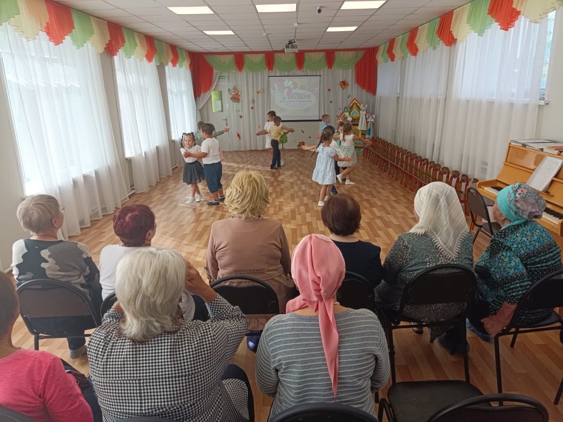 В преддверии Дня пожилых людей все внимание детей и сотрудников было обращено к людям старшего поколения, бывшим работникам детского сада. День пожилых людей - это ещё одна возможность привить нашим детям любовь и уважение к старшему поколению. Воспитанники подготовили концерт на котором они с удовольствием читали стихотворения, пели песни о семье и детском саду, танцевали веселые польки. Также в концерте приняли участие выпускники детского сада. Они спели для гостей песню и исполнили на фортепиано произведение Р. Яхина. Праздник завершился душевными беседами за чаепитием.