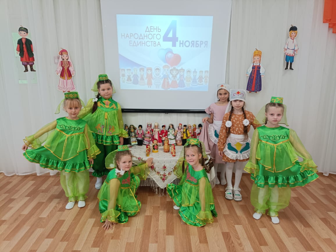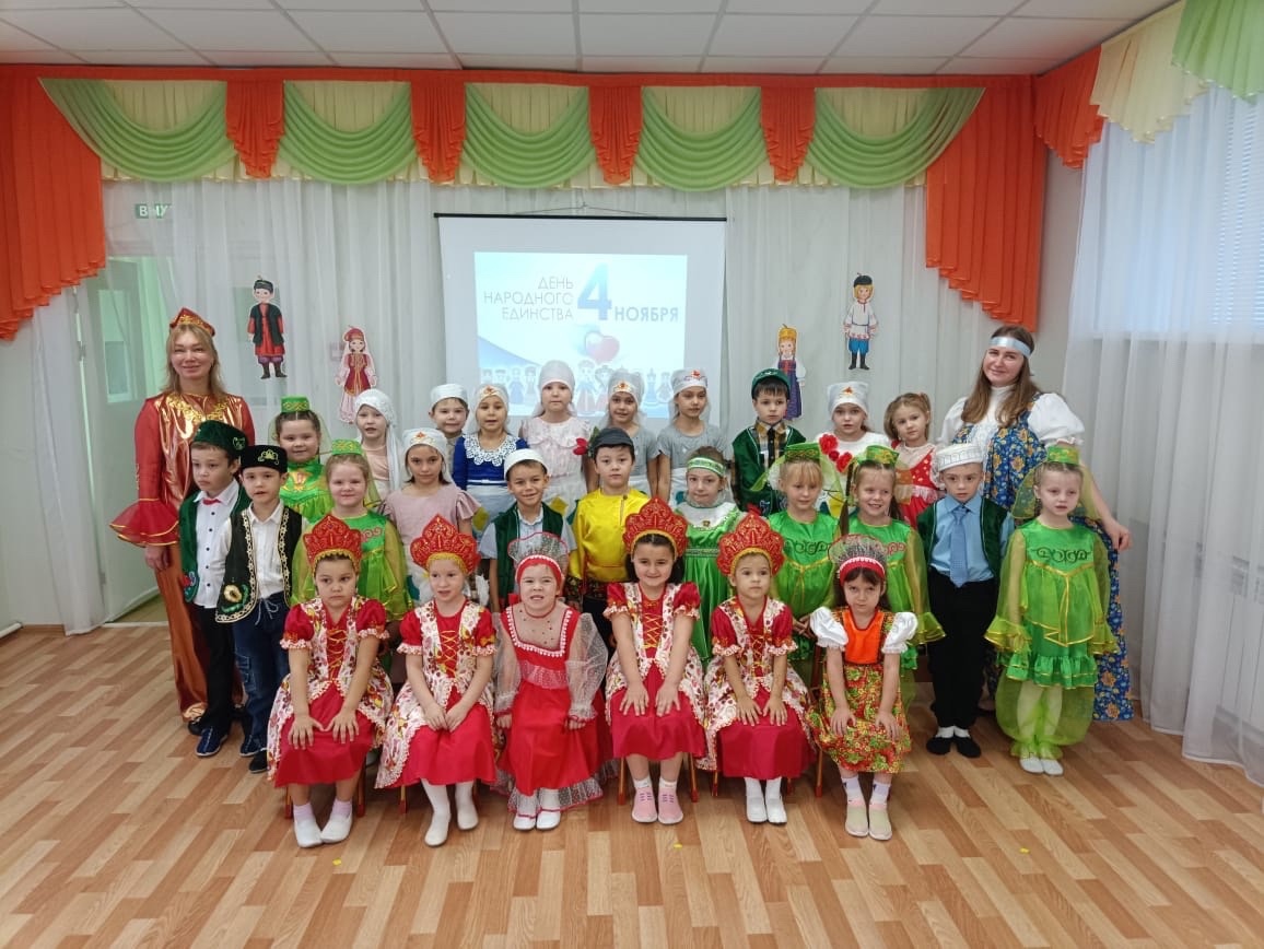 4 ноября вся Россия отмечает праздник День Народного Единства – праздник единства почти ста девяноста национальностей, проживающих на территории нашей страны. В детском саду №25 «Сказка» воспитатели и дети собрались вместе на праздник, посвященный этой дате. На празднике дети узнали о великом подвиге Дмитрия Пожарского и Кузьмы Минина, читали стихи и пели песни о нашей Родине, исполняли национальные танцы, поиграли с малышами в национальные игры. В заключение праздника, крепко взявшись за руки, дети объединились в один большой дружный многонациональный хоровод. В нашей стране живет много народов и для всех нас Россия является Родиной.