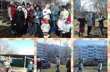 На субботник вышли дружно,Все сегодня уберем,Грабли, метлы, все, что нужноМы с собою принесем! -