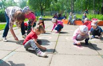 Праздничные мероприятия были организованы на прогулке на групповых участках: проводились эстаеты, подвижные игры. Для детей младших групп были организованы игры с мыльными пузырями, дети старшего дошкольного возраста создавали чудесные рисунки на асфальте.