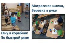 Воспитатель Елена Анатольевна учила детей азам общения с гостями группы и основам рисования кисточкой и красками. В этом ей помог Костя из подготовительной группы, который пришёл в первую младшую группу с любимой игрушкой - корабликом. Он рассказал про него всё что знал деткам, а потом у малышей было занятие по рисованию. Они учились рисовать волны, по которым весело ходит кораблик.