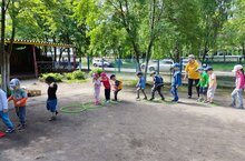 Сегодня в нашем детском саду прошло развлечение по экологической теме. Дети все вместе отправились в лесное путешествие, пройдя испытания. А в лесу их встретил Лесник, который объяснил детям как нужно себя вести в лесу. Лесник дал каждой группе различные, интересные задания по возрасту детей. А наше увлекательное развлечение мы завершили флэшмобом.