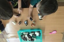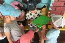 Воспитанники младших групп построили веселый зоопарк и заселили в него различных животных, о которых они узнали за время обучения в детском саду. Здесь и маленький зайчик и проворная белочка и ежик. Чем больше дети открывали мир природы, тем разнообразнее становился зоопарк.