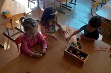 Важным компонентом в формировании познавательной деятельности детей является развитие сенсорных способностей (различение цвета, формы, структуры предметов). Развитая мелкая моторика рук обеспечивает хорошую координацию движений и напрямую связана с развитие речи и мыслительных процессов. На занятиях с педагогом-психологом дети ясельных групп учатся «Собирать бусы» нанизывая фигуры разной формы, но одного цвета на шнурок такого же цвета, составлять рисунок из мозаики с использованием дидактического комплекта «Дары Фребеля».