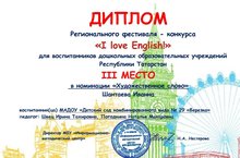 Так называется конкурс среди воспитанников, изучающих английский язык. В нашем ДОУ вот уже 2 года действует студия английского языка. Первые наши успехи особенно радуют, педагог Миляуша Хусаиновна подготовила победителей городского конкурса. Надеемся наши дошколята выйдут из стен «Березки», готовые к общению со сверстниками на английском языке.